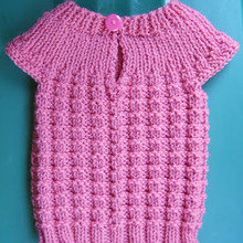 Intermediate. A sweet little short sleeve sweater closed with a single top button.
